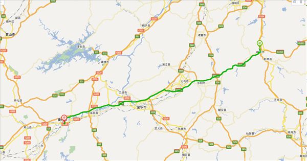 方案二:甬金高速公路、沪昆高速公路,用时2小时36分钟,共221公里。(时间最快)