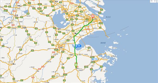 方案三:京福线公路、杭沈线公路、钱陶公路公路、东湖高架公路、沪瑞线公路、三环北路公路、朱枫公路公路、沪青平公路公路、延安高架路公路,用时6小时13分钟,共306公里。(不走高速,不用过路费)