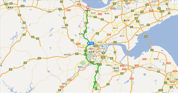 方案二:沪昆高速公路、杭州绕城高速公路、长深高速公路,用时2小时13分钟,共169公里。(时间最快)