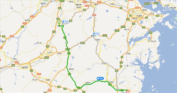 方案二:诸永高速公路、台金高速公路,用时2小时52分钟,共232公里。(时间最快)