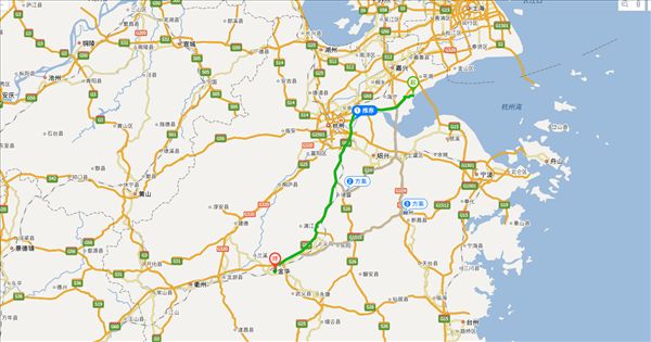 方案一:杭州湾环线高速公路、沪昆高速公路,用时2小时54分钟,共239公里。(最快)