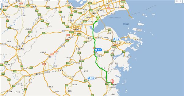 方案二:杭州湾环线高速公路、常台高速公路、沈海高速公路、台金高速公路,用时3小时24分钟,共270公里。(时间最快)
