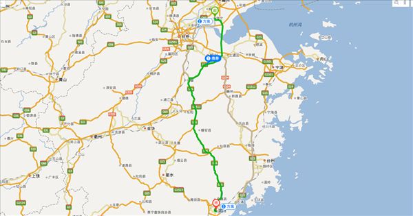 方案二:杭州湾环线高速公路、沪昆高速公路、诸永高速公路,用时4小时0分钟,共344公里。(时间最快)