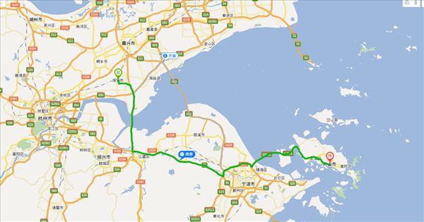 方案二:硖斜线公路、S101公路、江东大道公路、滨海大道公路、杭沈线公路、慈海北路公路、镇骆西路公路、舟山轮渡公路,用时6小时51分钟,共271公里。(不走高速,不用过路费)