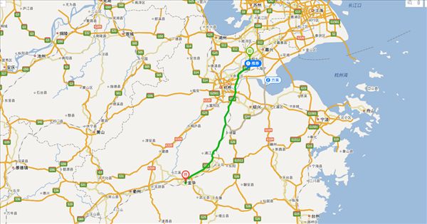 方案三:沪瑞线公路、东湖高架公路、零三省道公路、春江路公路、诸安线公路、S103公路、四海大道公路、金义快速路公路,用时4小时40分钟,共227公里。(不走高速,不用过路费)