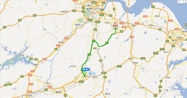 方案二:沪昆高速公路、诸永高速公路、绍诸高速公路,用时1小时46分钟,共124公里。(时间最快)