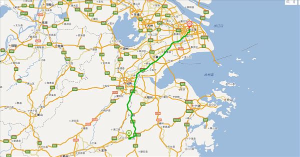 方案三:公路、阳光大道公路、S103公路、诸安线公路、零三省道公路、东湖高架公路、沪瑞线公路、三环北路公路、朱枫公路公路、沪青平公路公路、延安高架路公路,用时7小时34分钟,共319公里。(不走高速,不用过路费)