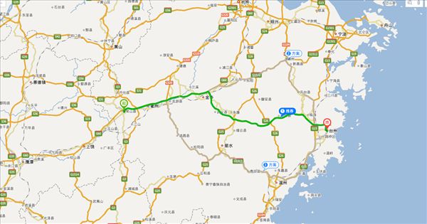 方案二:沪瑞线公路、G320公路、四六省道公路、S315公路、虹戴公路公路、温寿线公路、S322公路、三五省道公路、京福线公路、大桥路公路、黄椒路公路,用时7小时37分钟,共373公里。(不走高速,不用过路费)