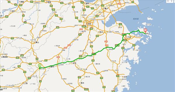 方案二:沪瑞线公路、G320公路、四六省道公路、S315公路、虹戴公路公路、二环北路公路、金义快速路公路、四海大道公路、S103公路、诸安线公路、S308公路、亚厦大道公路、杭沈线公路、六一省道公路、古乍线公路、江北连接线公路、北环东路公路、舟山轮渡公路,用时10小时10分钟,共469公里。(不走高速,不用过路费)