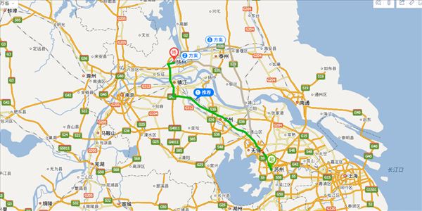 京沪高速、沪蓉高速、沪霍线、扬溧高速、润扬中路,用时2小时42分钟,共191公里。