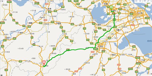常台高速、申嘉湖高速、申嘉湖杭高速、长深高速、杭瑞高速,用时4小时30分钟,共363公里。