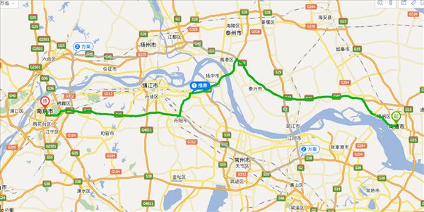 沿江公路、沪陕高速、京沪高速、泰镇高速、港南路、金润大道、乔家门立交桥、宁镇公路,用时4小时11分钟,共228公里。