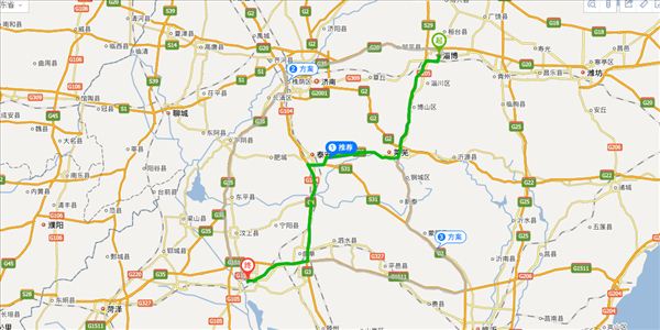 滨莱高速、莱泰高速、泰新高速、京台高速、日兰高速、连菏线,用时3小时38分钟,共270公里。