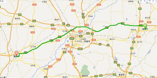 联通路、青银高速、京沪高速、济南绕城高速、青兰高速,用时2小时51分钟,共209公里。