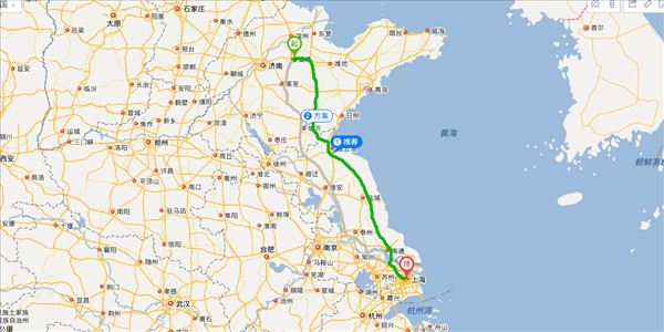 青银高速、长深高速、沈海高速、沪嘉高速,用时8小时17分钟,共803公里。