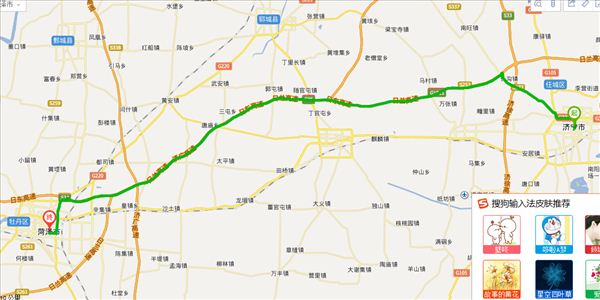 呈祥大道、连菏线、黄河东路,用时2小时40分钟,共110公里。