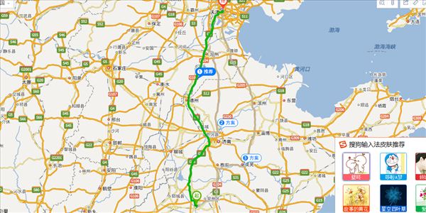 京珠线、济徐高速、济广高速、济南绕城高速、京台高速、京沪高速、津沧高速,用时5小时35分钟,共486公里。