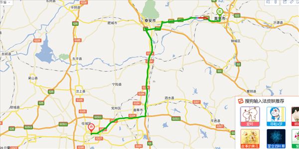 莱泰高速、泰新高速、京台高速、日兰高速、连菏线,用时2小时43分钟,共181公里。