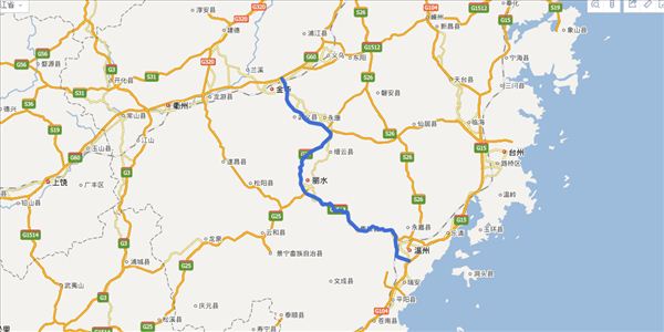 金丽温高速全程路线图如下: