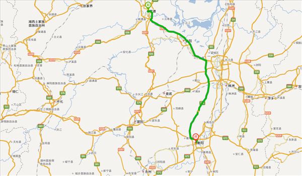 二广高速、长张高速、长湘高速、岳临高速,用时3小时38分钟,共326公里。