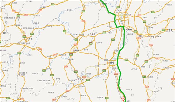二广高速、长张高速、长湘高速、岳临高速、沪昆高速、京港澳高速,用时5小时29分钟,共487公里。