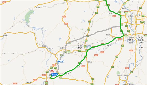长张高速、长湘高速、岳临高速、沪昆高速,用时3小时22分钟,共275公里。