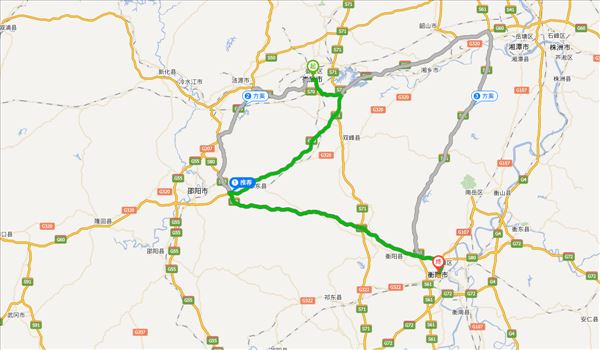 沪昆高速、衡邵高速,用时2小时18分钟,共207公里。