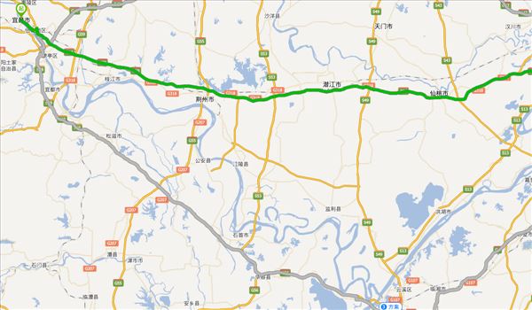 三峡高速、沪渝高速、武汉绕城高速、京港澳高速、桂乡大道,用时4小时9分钟,共368公里。