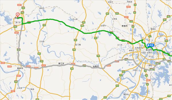 武鄂高速、欢乐大道、二环线、沪蓉高速,用时3小时46分钟,共316公里。