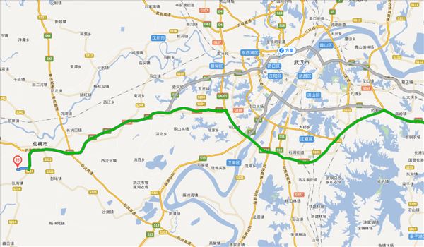 沪渝高速、武汉绕城高速,用时2小时13分钟,共175公里。
