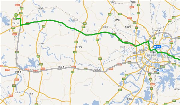 沪蓉高速、二环线、武鄂高速、黄鄂高速,用时3小时47分钟,共314公里。