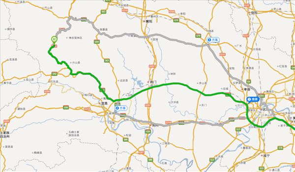 呼北线、神宜公路、保兴公路、沪蓉高速、武汉绕城高速、沪渝高速,用时8小时5分钟,共611公里。