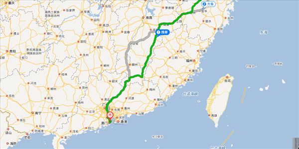 佛山一环南延线、京珠线,用时2小时49分钟,共115公里。