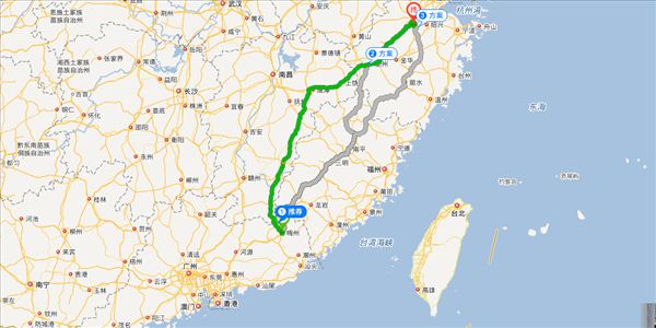 长深高速、广河高速、广州环城高速、广佛高速,用时5小时13分钟,共411公里。