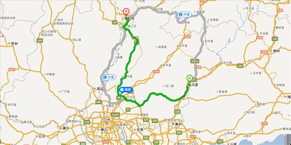 长深高速、广河高速、派街高速、城鳌大道东、京港澳高速、韶赣高速,用时4小时22分钟,共347公里。