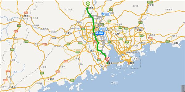 广清大道、广清高速、广珠西线高速、新隆立交桥、京珠高速、港湾大道,用时3小时41分钟,共195公里。