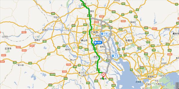 广清大道、广清高速、广珠西线高速,用时3小时15分钟,共153公里。