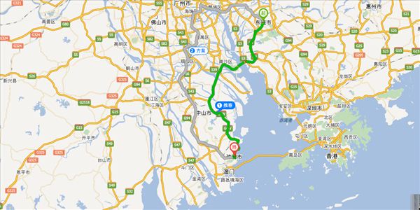 京港澳高速、莞佛高速、广澳高速、京珠高速、港湾大道,用时2小时7分钟,共123公里。