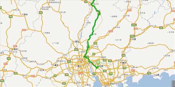 京港澳高速、广州绕城高速、韶赣高速,用时3小时30分钟,共269公里。
