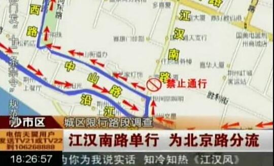 时段:6:00----22:00,限行:禁止车辆直行和左转,东、西进口(江津西路由东往西方向和荆南路由西往东方向)6:00----22:00禁止车辆左转。