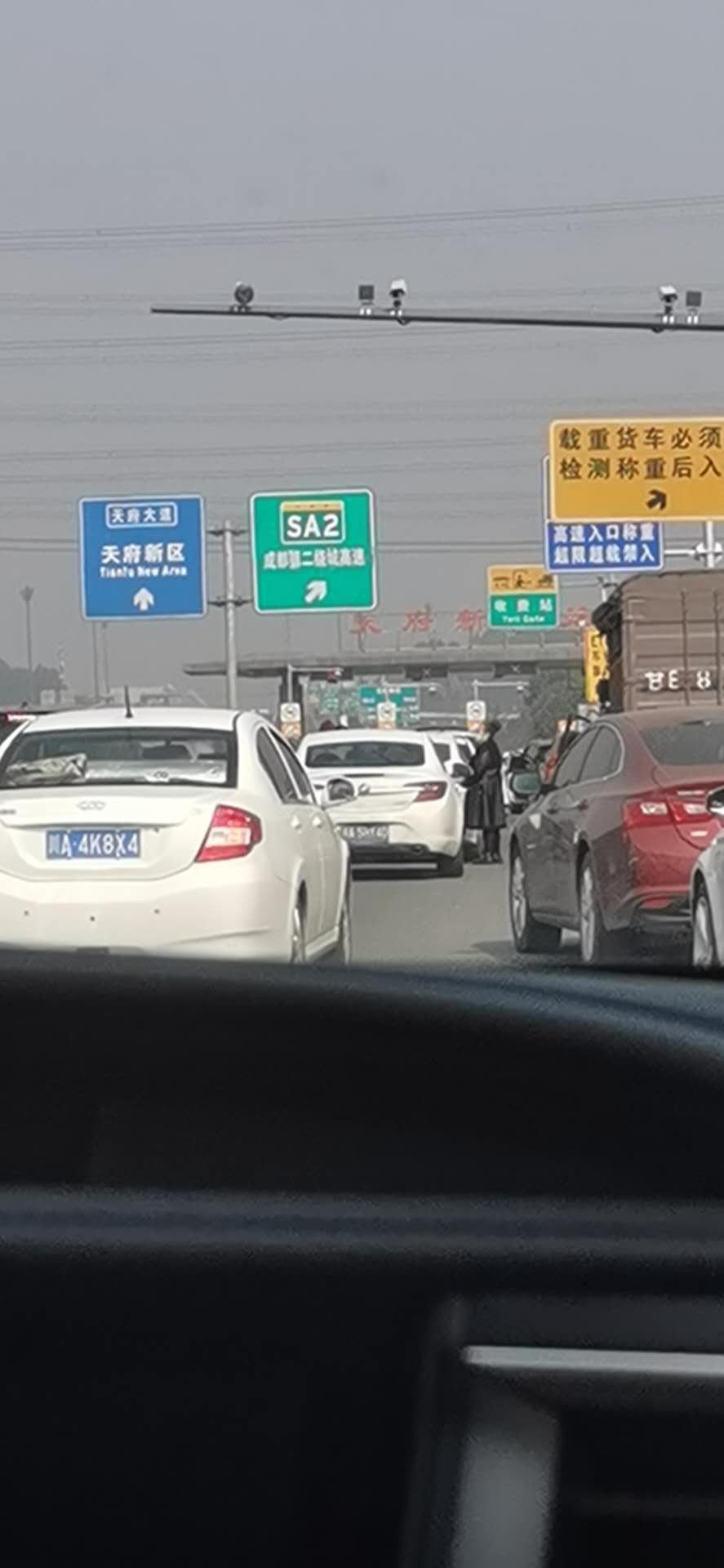 报告内容:“成都第二绕城高速 天府新区站 堵了三个小时了”。
